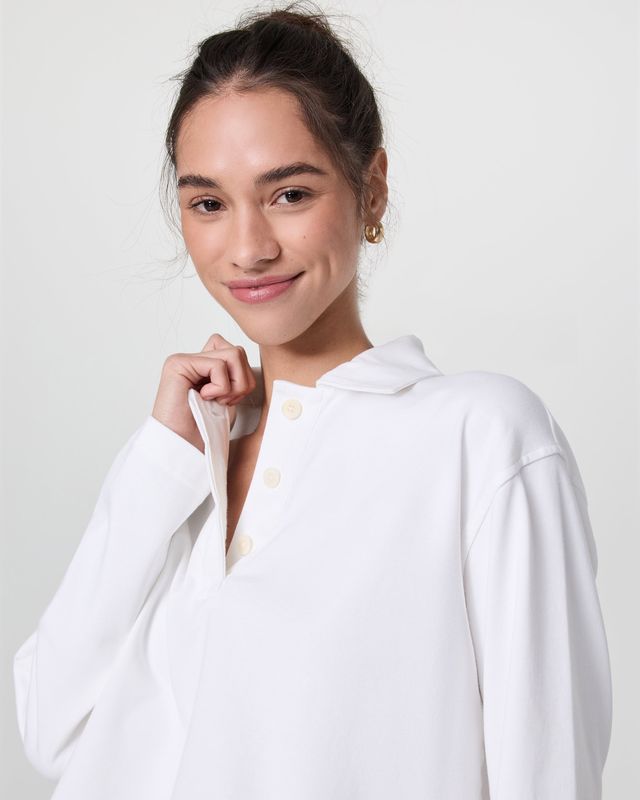 Taking inspiration from classic rugby polos, this essential layering piece blends neutral elegance with sporty style. It’s crafted with a heavyweight cotton knit in an oversized fit and finished with a collar complete with a hidden button placket.
