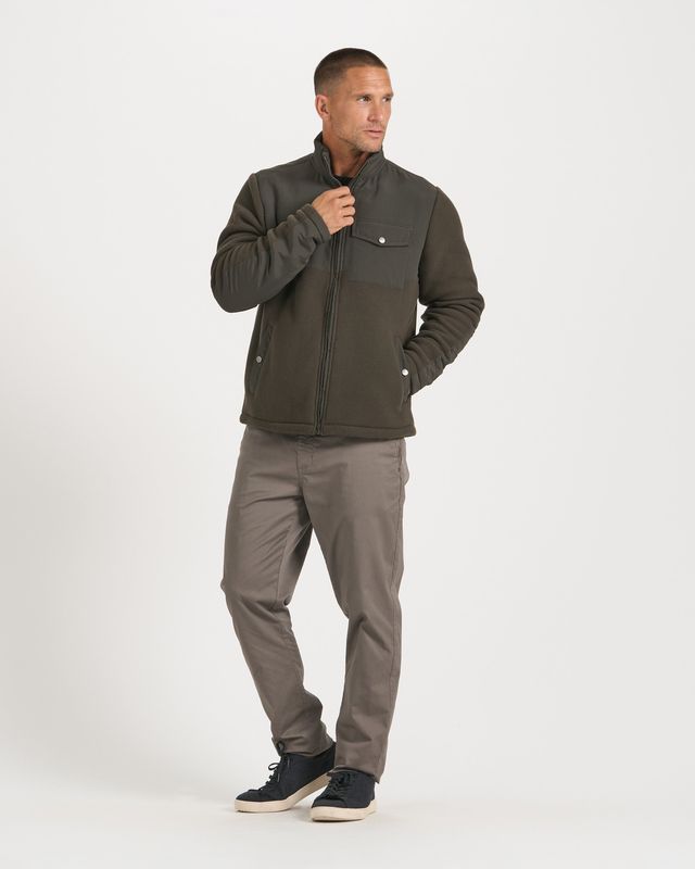 Our performance sherpa fleece, made from recycled materials, keeps you warm while looking great in our sleek, signature style. With coated, woven overlays and patches for water and wear resistance, this front-zippered jacket features a chest and hand pockets for convenience. Great for travel and outdoor wear.4-Way Stretch