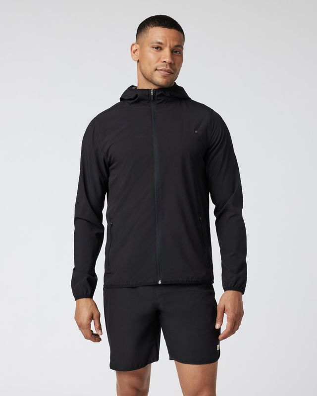 Take on the great outdoors with our men’s hooded Outdoor Trainer Shell jacket. Crafted from lightweight, 4-way stretch performance material, it’s water-resistant, moisture-wicking, and ready for anything. With multiple zip pockets and a reflective logo, this jacket has you covered for every adventure.