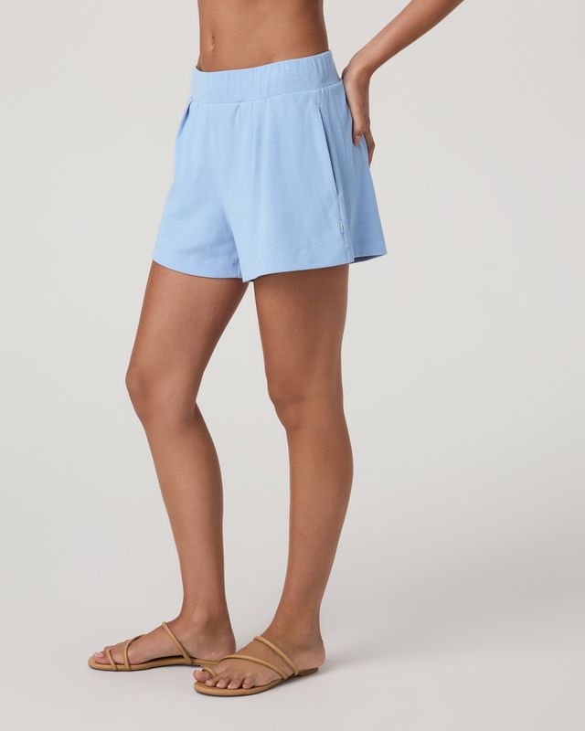 We love the fit and feel of our stretch rib knit, especially in this new lifestyle bottom. The Pose Short features a relaxed fit, side seam pockets, and a chic ruched elastic waistband with elegant front pleats. Pairs perfectly with our Pose Cami.