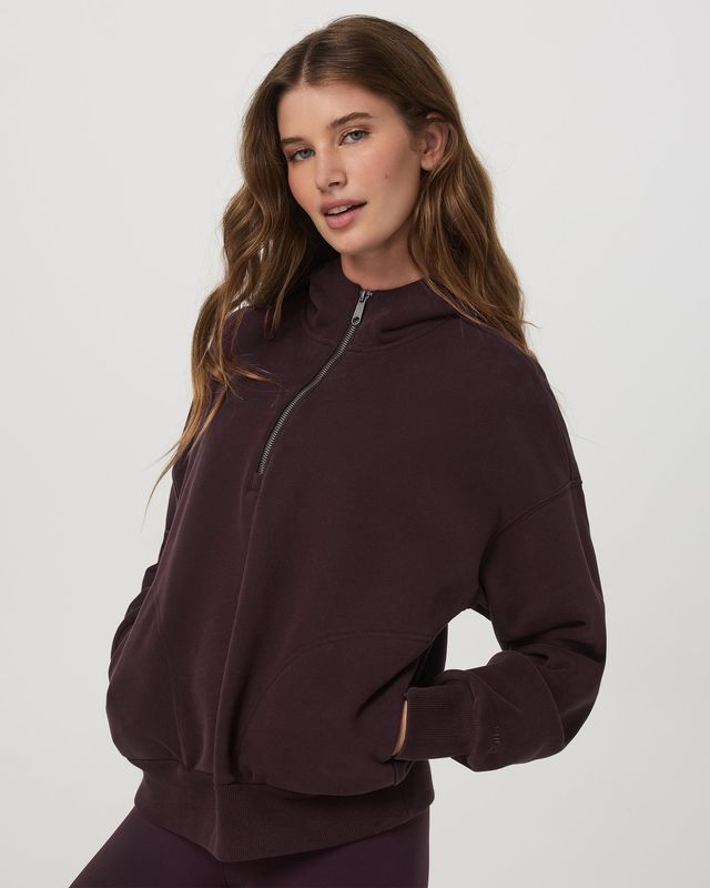 A new favorite in our cozy Restore lineup. This oversized half zip is made from our brushed French terry fabric, now treated with a bio-wash finish for next-level softness. Designed with ribbed cuffs and hemline, it’s the roomy layer you’ll reach for again and again