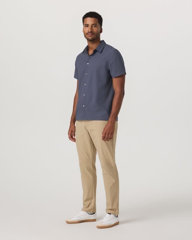 Light and luxe on the skin, our Short Sleeve Manhattan Button Down combines tailored style with endless wearability. It’s made with a performance stretch woven from 100% recycled material designed for days when you want to look and feel like a premium feature.