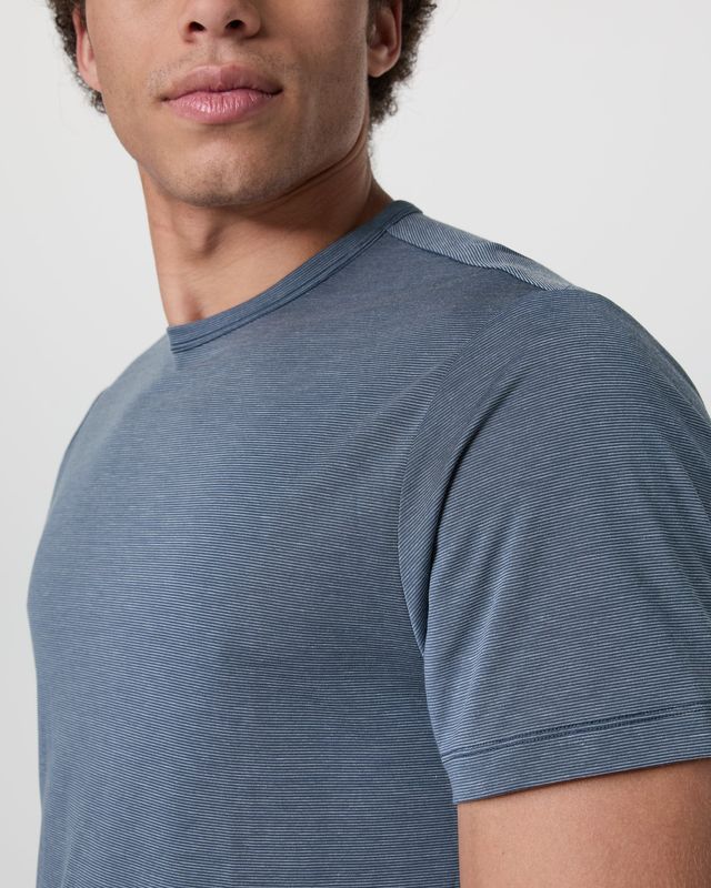 Ultra-light and breathable performance first-layer to everyday staple, the Marina Stripe Tee features a micro stripe pattern in a moisture-wicking technical fabric, making it a versatile staple.