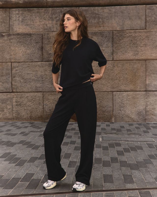 •The double-knit fabric tailors up beautifully. It is stretchy and smoothing and soft