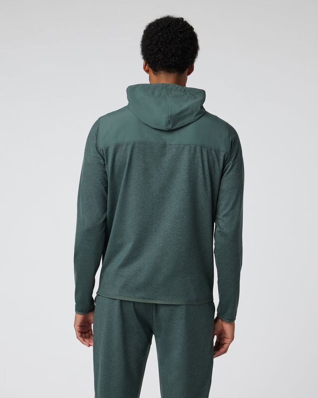 This jacket checks the boxes for both soft performance stretch knit plus protective nylon, making it perfect for comfortable outdoor wear. Moisture-wicking fabric along with nylon overlays, a drawcord hoodie, and zip pockets keep you in check. Great for training and running.