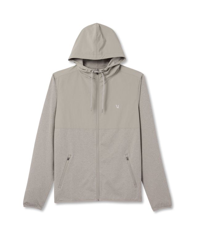 This jacket checks the boxes for both soft performance stretch knit plus protective nylon, making it perfect for comfortable outdoor wear. Moisture-wicking fabric along with nylon overlays, a drawcord hoodie, and zip pockets keep you in check. Great for training and running.