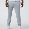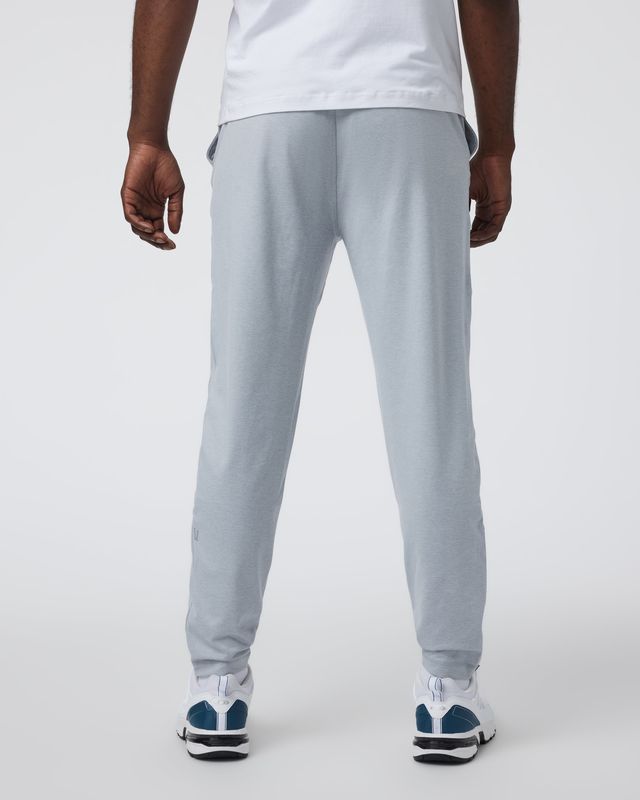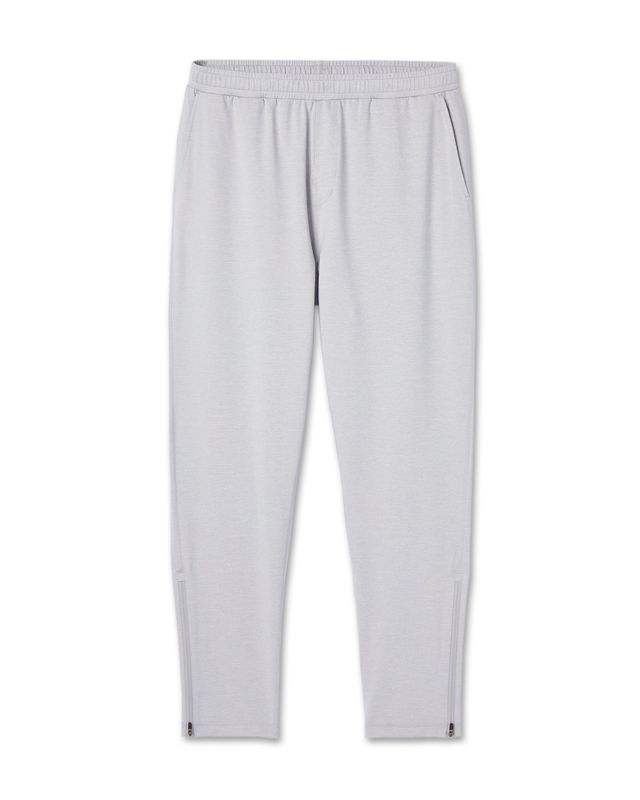 Track pant style in a super soft stretch knit. Built to sprint or to sprawl out, these moisture-wicking bottoms are finished with front and back pockets and zippered hemlines.