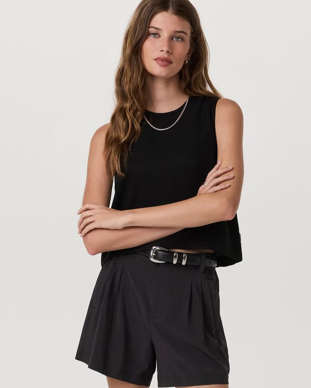 Crafted with a breathable linen blend, the Trestles Twill Crop Tank pairs sophisticated style with warm weather comfort. This women’s tank top features a slightly cropped hemline, elegant darting, and a relaxed fit.