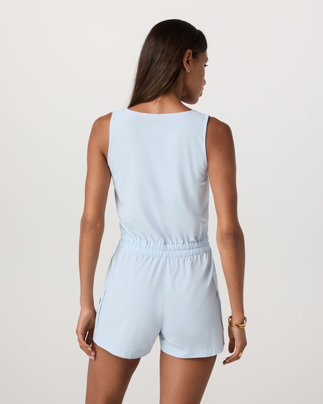 This easy-wearing romper pairs a flexible stretch woven from 45% recycled materials with details geared for utility. It features a ring-snap placket, cargo patch pockets, and our signature Villa smocked waistband for all-day comfort.