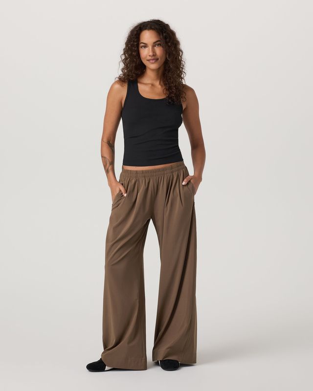 Go with the flow with the Villa Vibes Wideleg. Featuring an ultra-wide leg and pleats for cozy volume, these women’s bottoms are equally breezy and beautiful. They’re designed with our wrinkle-resistant stretch woven fabric, an encased elastic waistband, and on-seam side pockets. This version features a shorter inseam.
